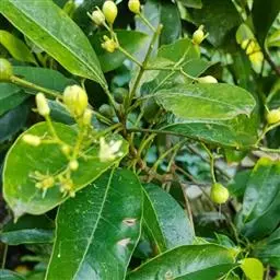 果实长6.5~6.5厘米,宽2~3.5厘米,圆柱状钟形,基部浑圆,种子长5~7毫米,有光泽,榄绿色至黄色。花期5月,果期8月。