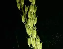 如果种植密度很大,在雨季、空气湿度大,容易发生斑枯病。此病危害叶片,导致植株提前死亡。严重影响块根和种子产量,所以应在雨季病害发生前,按说明喷洒速克灵或代森锰锌3—4次,每次间隔10天左右,可防治病害发生。 黄花乌头三年生植株比较高大,可达1—1.5米,而且穗状花序十分巨大,植株首先从基部开始木质化,遇大风或降雨极易倒伏折断,给生产造成损失。为了减小损失,栽培上可在床间或每隔3根垅种植一行玉米,可减轻大风危害,防止倒伏。