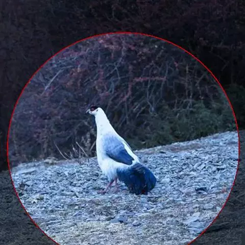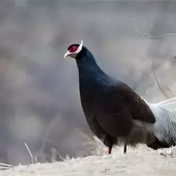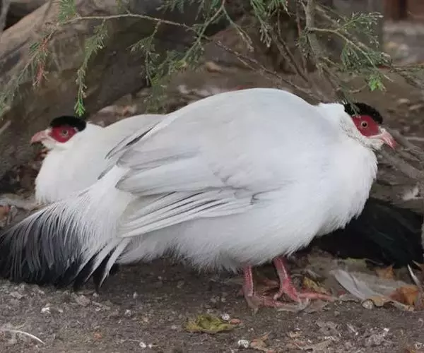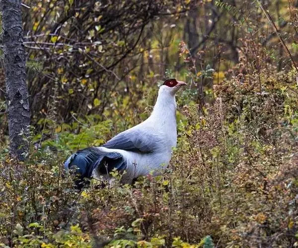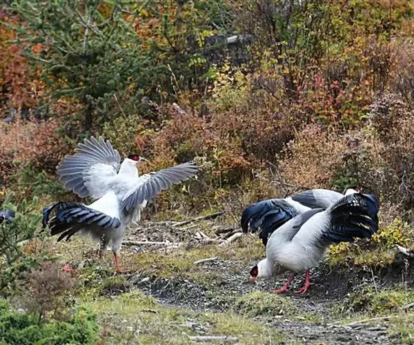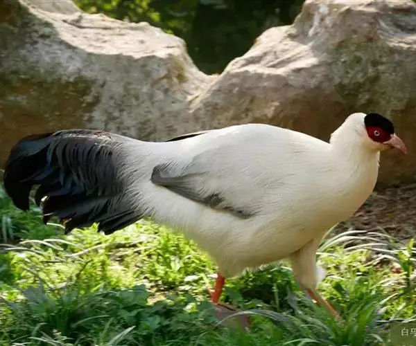 白马鸡(学名:Crossoptilon crossoptilon)共有四个亚种。是大型雉,体长80-100厘米。通体大都白色,头侧绯红色;头顶具黑色短羽,耳羽簇白色,呈短角状。胸淡灰色或白色,飞羽灰褐色,尾羽特长,大都辉绿蓝色,末端沾紫色光泽,羽枝大都分离,披散而下垂。