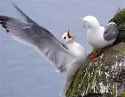 灰翅鸥,夏羽头、颈、腰、尾白色;肩、背和翅上覆羽鸽灰色。冬羽和夏羽相似,但头和颈具淡褐色纵纹,有时…