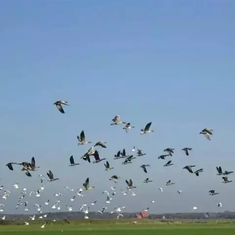 雪雁是鸭科雁属鸟类,雁属中体形大,个体重的鸟类。羽毛洁白,翼角黑色。飞行时双翼拍打用力,振翅频率高。…