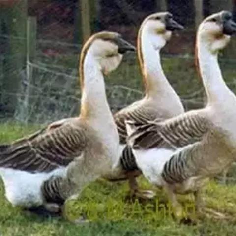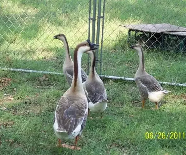 3、繁殖。性成熟期180天。一般210天开产,种蛋受精率在80%左右,母鹅有较强的就巢性,雏鹅成活率在90%以上。