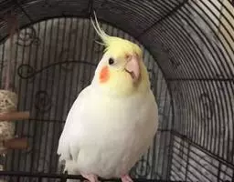 黄化鸡尾鹦鹉:始于1958年美国的弗罗里达州,黄化种是由于黑色素的缺乏,导致它们身体羽为白色,头具淡黄色羽冠,嘴为象牙白色。头部、脸颊、下颌至上喉部均为淡黄色,脸颊具橘黄色圆形块斑。跗跖、脚为肉粉色。
