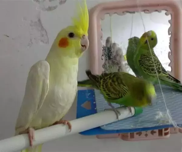 鸡尾鹦鹉(学名:Nymphicus hollandicus):体长32-33厘米,翅膀长度约16-18厘米,野生的顶冠长4-6厘米,饲养驯养的冠毛长4-11厘米。体重80-100克寿命20年,已知的活得最久达36周岁。是凤头鹦鹉科中的一种小型鹦鹉。有一个竖立在脑袋上的顶冠。羽毛一般是中度灰色的,身体下部颜色比较浅,橙色脸颊,翅膀上有白色的大羽斑。没有亚种,有许多变种,较常见的是灰色、白色、珍珠等品种;以颜色区分达18种不同的变种,另有少数一些不确定特例。