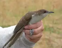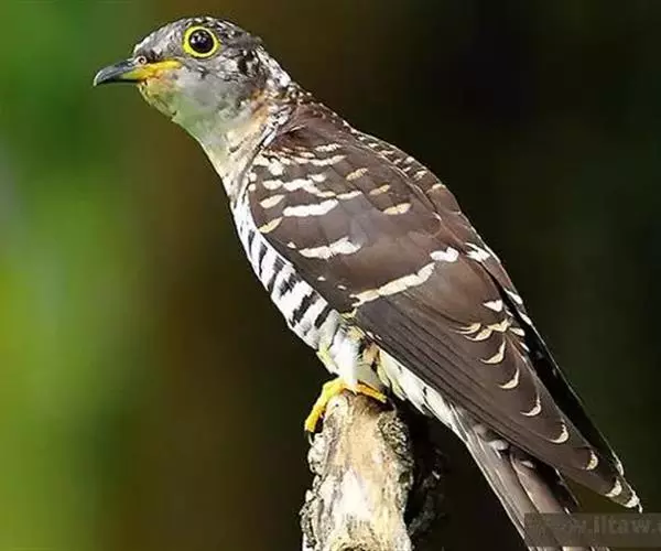 四声杜鹃(学名:Cuculus micropterus):是中型鸟类,体长31-34厘米。头顶和后颈暗灰色;头侧浅灰,眼先、颏、喉和上胸等色更浅 ;上体余部和两翅表面深褐色 ;尾与背同色,但近端处具一道宽黑斑。下体自下胸以后均白,杂以黑色横斑;翅形尖长;尾具宽阔的近端黑斑,翅缘白而无斑;下体横斑较粗,达3-4毫米宽,且较疏,斑距超过5 毫米。
