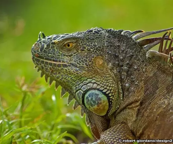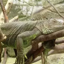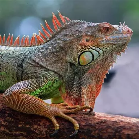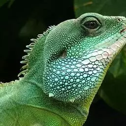 绿鬣蜥(学名:Iguana iguana)是美洲鬣蜥科、美洲鬣蜥属爬行动物。绿鬣蜥是鬣蜥种类中体型最大的,由于被广泛饲养,所以成为最有人气的鬣蜥种类。 刚孵化的绿鬣蜥的长度从17-25厘米不等。大多数成年绿鬣蜥体重在4-6千克之间,但在南美洲,如果饮食适当,体重可以达到8千克。绿鬣蜥的头到尾长度可达2米左右。颜色是可变的。随着年龄的增长,成年绿鬣蜥的颜色会变得更加均匀,而幼年绿鬣蜥的颜色可能会出现斑点或在绿色和棕色之间出现条纹。绿鬣蜥的其他显着特征包括喉咙下的颈下垂皮,由从中颈到尾巴基部延伸的真皮刺组成的背顶,以及长长的逐渐变细的尾巴。成年雄性比雌性的颈下垂皮更发达。侧边的眼睛主要由不动的眼睑和自由活动的下眼睑保护。在眼睛后面的头骨的背中线是顶眼。头部的鳞片比身体其他部位的鳞片更大,更不规则。在鼓膜下方有一个巨大的圆形鳞片,称为鼓室下板。