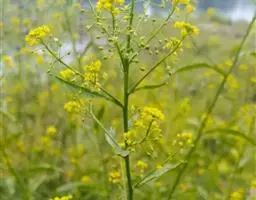 芝麻菜(学名:Eruca sativa Mill.)是十字花科,芝麻菜属一年生草本植物,高可达90厘米;茎直立,叶片羽状分裂或不裂,顶裂片近圆形或短卵形,有细齿,侧裂片卵形或三角状卵形,上部叶无柄,总状花序有多数疏生花;花梗长柔毛;萼片长圆形,棕紫色,花瓣黄变白,有紫纹,短倒卵形,果瓣无毛,种子棕色,有棱角。5-6月开花,7-8月结果。