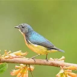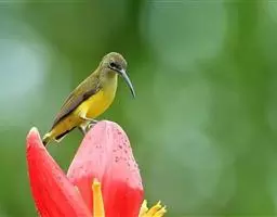红胸啄花鸟:体重5-10克,体长60-92毫米。体形纤小。雄鸟上体呈辉亮的金属绿色;下体棕黄,…