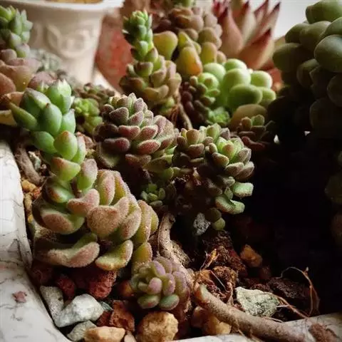 玉缀,别名翡翠景天景天科景天属常绿或半常绿多肉植物。植物匍匐下垂,翠绿色。叶小,多汁,纺锤形,、密…