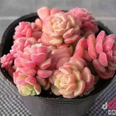 叶片微被细毛,在日照时间长且具一定温差的环境下会呈现粉色。