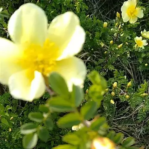 玫瑰:蔷薇科、蔷薇属的灌木;株高达2米;茎粗壮,丛生;小枝密生线毛,针刺和腺毛,有皮刺,淡黄色,…