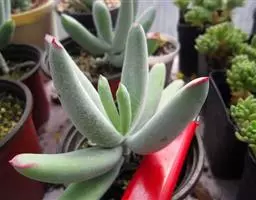 灯美人是景天科的园艺品种,多肉植物。叶片近柱状,丛生,在日照时间长、温差大的环境下会呈现橙粉色。