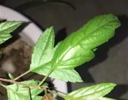 叶片卵形或椭圆形,长5-9厘米,宽4-5厘米,先端渐尖或急尖,基部宽楔形,边缘有细锐锯齿,在幼嫩时上下两面的中脉及侧脉有柔毛,逐渐脱落,仅在下面中脉稍有短柔毛或近于无毛;叶柄长1-5厘米,嫩时密被柔毛,老时脱落。
