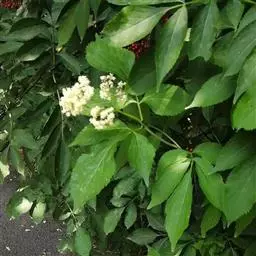乔木,高可达15 米。羽状三出复叶对生,小叶片椭圆形或倒卵状椭圆形,长6~10 厘米,宽3~5 厘米,先端短渐尖,基部楔形或宽楔形,稀近圆形,边缘具细锯齿。圆锥花序叶腋生,花白色。蒴果梨形或椭圆形膨大,先端3 浅裂。