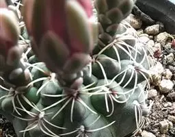 绯花玉 Speg.)是仙人掌科、裸萼球属多肉植物,植株呈扁球形,表皮墨绿色,刺针状,…