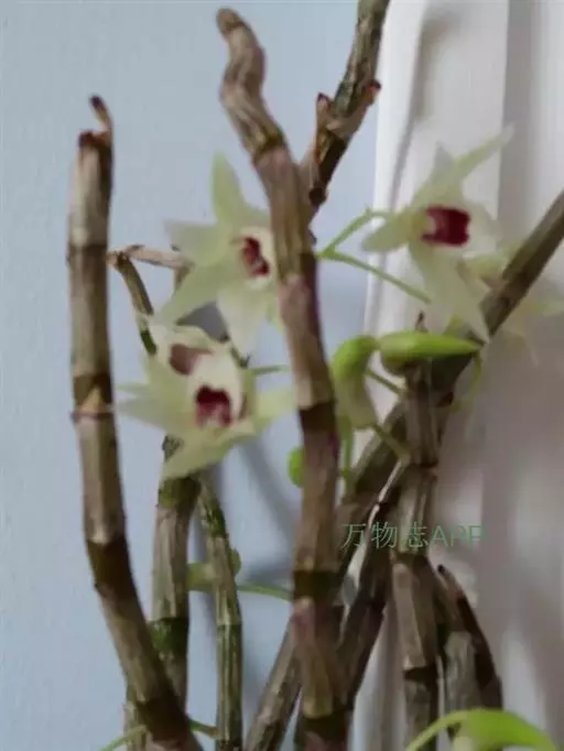喉红石斛:附生。茎丛生,直立,粗短,近棒状纺锤体。叶2-4枚,生于茎顶。总状花序顶生,花序轴长5-…