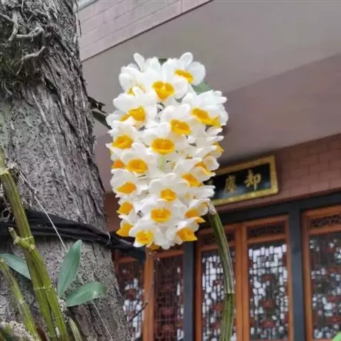 球花石斛,是兰科石斛属的多年生附生草本。茎直立或斜立,圆柱形,粗壮,基部收狭为细圆柱形,不分枝,…