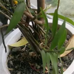 重唇石斛:茎下垂,圆柱形或有时从基部上方逐渐变粗,具少数至多数节。叶薄革质,狭长圆形或长圆状披针形。…