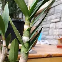 刀叶石斛:茎近木质,直立,有时上部分枝,扁三棱形,具多个节。叶二列,疏松套叠,厚革质或肉质,斜立,…