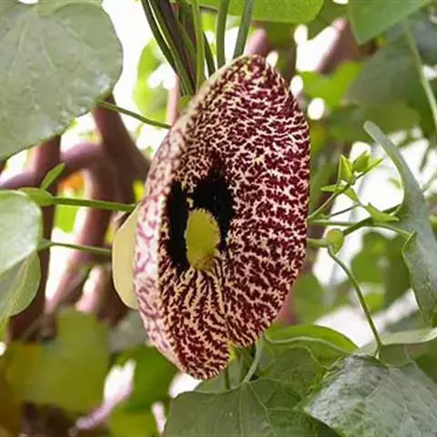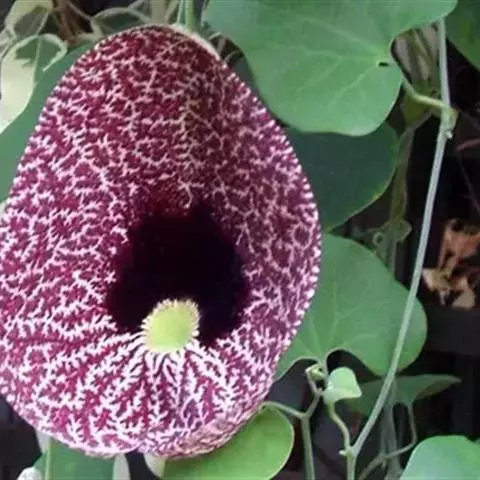 巨花马兜铃花朵的主要部分只有一片,看起来好像是一个巨大的、带有纹理的兜状物,而不像普通的花朵那样拥…