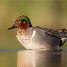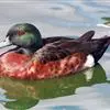 绿翅鸭是小型鸭类,体长37厘米,体重约0.5千克。嘴脚均为黑色。雄鸟头至颈部深栗色,…