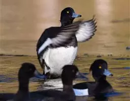 青头潜鸭,是雁形目鸭科潜鸭属的迁徙性鸟类。雄性头部和颈部为黑色,有绿色光泽,上体为黑褐色,…