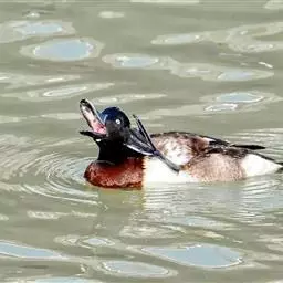 赤嘴潜鸭俗称大红头,是大型鸭类,个体比绿头鸭小,体长45-55厘米,体重1千克左右。雄鸟头浓栗色,…