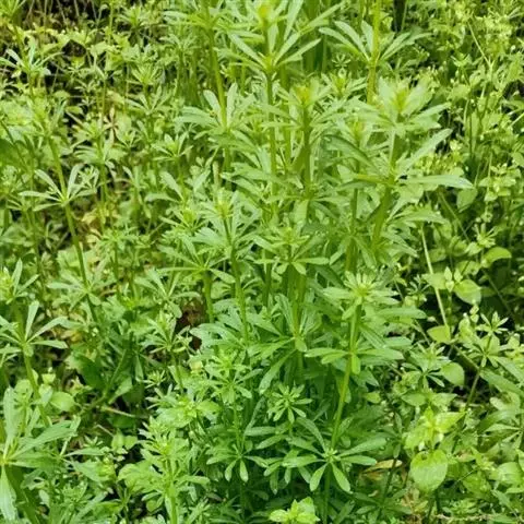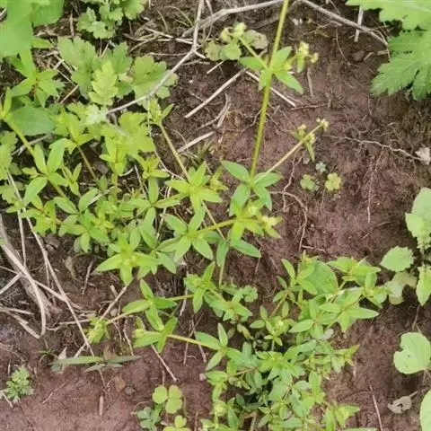 六叶葎 Ehrend. & Schönb.-Tem. ex R. R. Mill)是茜草科拉拉藤属的一年生草本。常直立,有时披散状,高10-60厘米左右,近基部分枝,有红色丝状的根;茎直立,具疏短毛或无毛;叶片薄,纸质或膜质,长圆状倒卵形、倒披针形、卵形或椭圆形顶端钝圆而具凸尖;聚伞花序顶生和生于上部叶腋,苞片常成对披针形,花冠白色或黄绿色,裂片卵形,雄蕊伸出;果近球形,单生或双生,密被钩毛;花期4-8月;果期5-9月。六叶葎分布于中国北、山西、陕西、甘肃、江苏、安徽、浙江、江西、河南、湖北等地,印度、巴基斯坦、尼泊尔、锡金、不丹、缅甸、日本、朝鲜、俄罗斯均有栽培。生于海拔920-3800米的山坡、沟边、河滩、草地的草丛或灌丛中及林下。六叶葎味甘,性平,具有清热解毒、利尿消肿的功效,可用于治疗尿路感染、赤白带下、痢疾、痛肿、跌打