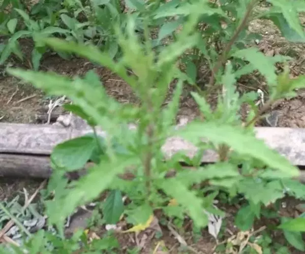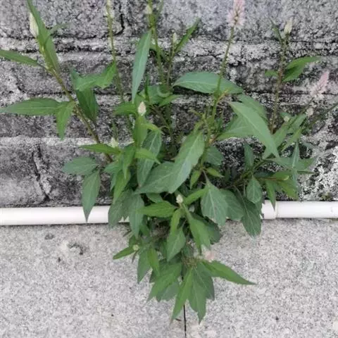 土荆芥(学名:ysphania ambrosioides (L.) Mosyakin et Clemants)是一年生或多年生草本,高50-80厘米,有强烈香味。茎直立,多分枝,有色条及钝条棱;枝通常细瘦。叶片矩圆状披针形至披针形,先端急尖或渐尖,边缘具稀疏不整齐的大锯齿。花两性及雌性,通常3-5个团集,生于上部叶腋。胞果扁球形,完全包于花被内。种子横生或斜生,黑色或暗红色,平滑,有光泽。花期和果期的时间都很长。