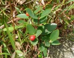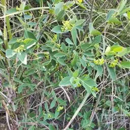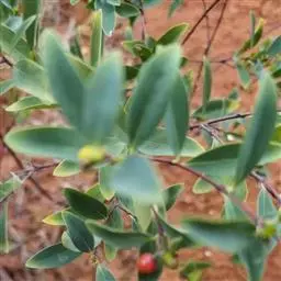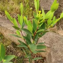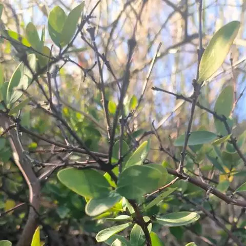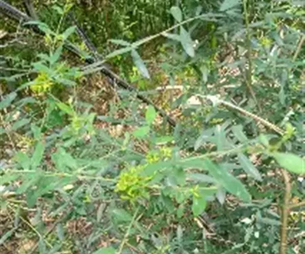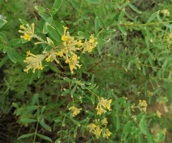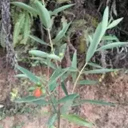 灌木,高约1米,分枝多而纤细,无毛;幼枝近四棱形,绿色,后变为褐色。叶对生,无毛,近革质,披针形,长2.5-5.5厘米,宽0.2-1厘米,先端尖,基部楔形,上面绿色,干后稍皱缩,下面灰绿色,光滑,侧脉每边7-8条,不明显;叶柄极短,近于无。