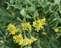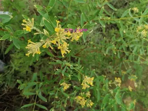 花黄色,花序穗状或由穗状花序组成的圆锥花序,顶生或腋生,密被灰色短柔毛;花梗极短,具关节,花后残留;花萼长约8-10毫米,外面被灰色绢状短柔毛,裂片4,2大2小,卵形至长圆形,端圆,约等于花萼长的1/3;雄蕊8,2列,着生于花萼筒的中部以上;花药长圆形,长约1毫米,花丝短,近于无;子房棒状,具柄,顶部被短柔毛,花柱短,柱头圆珠形,顶基稍压扁,具乳突;花盘鳞片1枚,线状披针形,端钝,约长0.8毫米。果卵形,干燥。花期6-8月,果期9月。