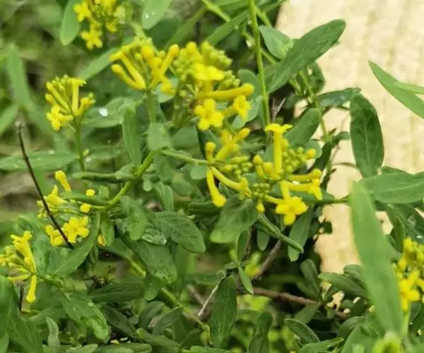 河朔荛花(学名:Wikstroemia chamaedaphne Meisn. )是瑞香科荛花属灌木,高约1米,分枝多而纤细,无毛;幼枝近四棱形,绿色,后变为褐色。叶对生,无毛,近革质,披针形,先端尖,基部楔形,上面绿色,干后稍皱缩,下面灰绿色,光滑,花丝短,近于无;子房棒状,具柄,顶部被短柔毛,花柱短,柱头圆珠形,顶基稍压扁,具乳突;线状披针形,端钝,果卵形,干燥。花期6-8月,果期9月。