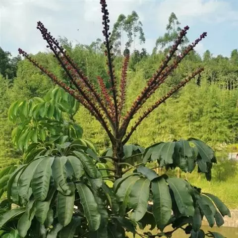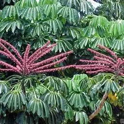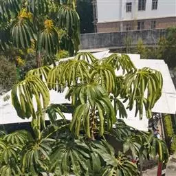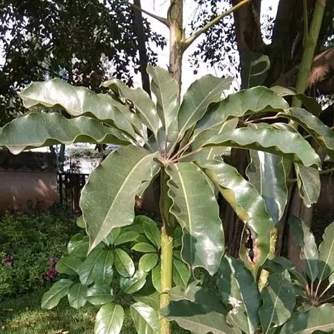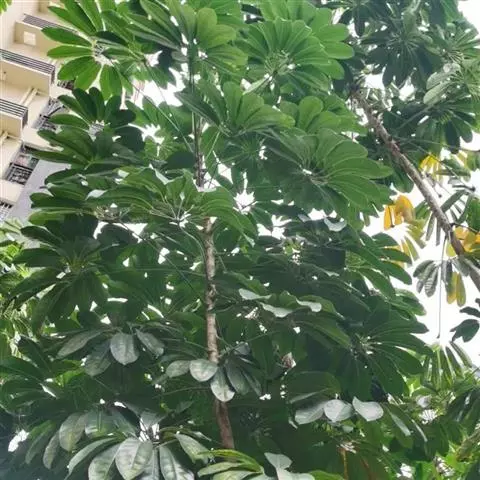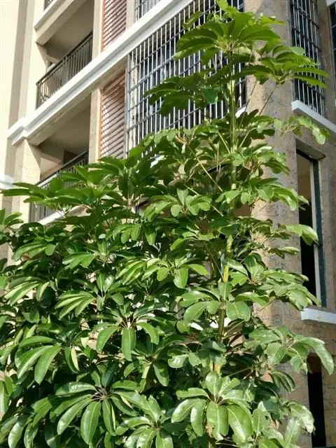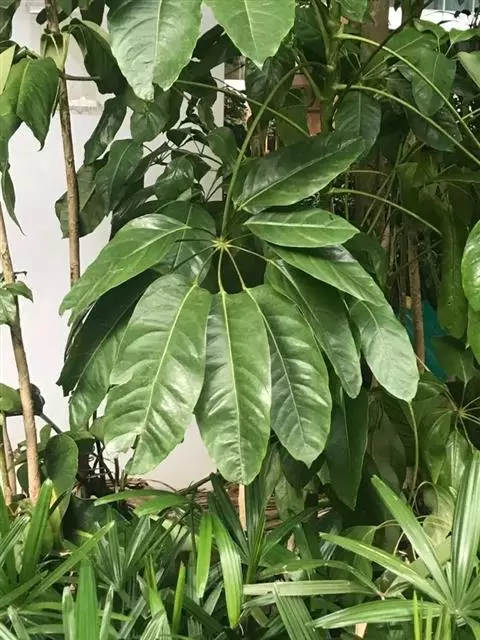 昆士兰伞木,吕松鹅掌柴 ,称昆石兰遮树,澳洲鸭脚木、方式叶鹅掌柴、伞树、大叶伞。叶片阔大,柔软下…