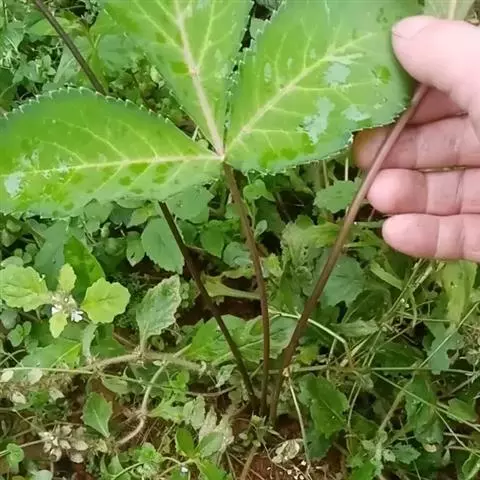 茎单生或有少数分枝,有细条纹,无毛。基生叶有柄,柄长4—8厘米,叶鞘短窄,边缘膜质而抱茎;叶片轮廓呈半圆形或阔三角形,长1.5—3.5厘米,宽2—5厘米,3深裂近基部或为3小叶,小叶片或裂片呈卵圆形以至倒卵形,长1—2.5厘米,宽0.8—2厘米,基部楔形,上部有锯齿或深浅不等的缺刻状锯齿,表面绿色,背面淡绿色或带淡紫色,序托叶的柄呈鞘状,叶片通常3裂,裂片线形,全缘。顶生伞形花序梗长4.5—10厘米,侧生伞形花序梗细弱;无总苞片和小总苞片,伞辐5––12,不等长,长1.5—6厘米;小伞形花序有花7—12,花柄在幼果时长1—1.5厘米,纤细,一侧较粗糙,萼齿明显,狭三角形;花瓣卵形或卵状披针形,长2—3毫米,宽约0.5毫米,基部较窄,顶端丝状,长约占花瓣1/2到1/3,表面有乳头状毛;花丝长不超过1毫米,花药卵圆形,花柱基稍隆起,花柱向外叉开。果实近卵圆形,长、宽各约2毫米,主棱丝状,分生果横剖面近圆形,胚乳腹面平直。花期8—9月,果期9—10月。