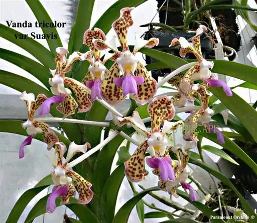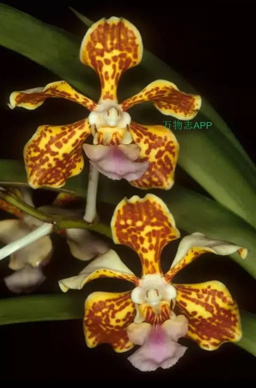 湿唇兰(学名:Hygrochilus parishii (Rchb. f.) Pfitz.):茎粗壮,长被宿存的叶鞘所包,上部具3-5枚叶。叶长圆形或倒卵状长圆形。花序1-6个,长达35厘米;疏生5-8朵花;花大,稍肉质,萼片和花瓣黄色带暗紫色斑点;萼片近相似,近宽倒卵形;花瓣宽卵形,长1.5-2.2厘米,宽1.4-1.7厘米,先端钝,具10条脉;唇瓣肉质,贴生于蕊柱基部,长约为萼片的一半,3裂。花期6-7月。