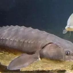 库页岛鲟,吻须较长,后伸接近上颌。第1鳃弓鳃耙少于30枚。体侧骨板22~36枚。大型肉食性鱼类,主…