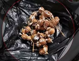 广西莪术虫害也不多,常见的有食叶性害虫姜弄蝶和蛀茎性害虫桃蛀螟,此外还有一些地下害虫,如蛴螬、小地老虎和蟋蟀等。姜弄蝶可选用敌百虫、溴氰菊酯、敌杀死等药剂喷杀,地下害虫可用辛硫磷浇施或制成毒土拌种施防治。桃蛀螟在广西南宁一年发生5代,幼虫5龄;从心叶开始自上而下钻蛀为害茎部,7-9月是全年为害高峰期;可用氯虫苯甲酰胺或三氟氯氰菊酯等药剂喷杀,种植诱集植物红球姜并辅以使用1次氯虫苯甲酰胺,受害株率及虫口密度可大大降低。