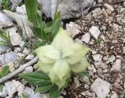花近无梗,对生,少数聚集在短枝的顶端组成总状花序;苞片小,具柄。花萼卵状钟形,长约4毫米,外面密被白色星状绒毛及腺体,内面无毛,11脉,二唇形,上唇近圆形,全缘或具很短的3齿,下唇2齿,齿卵圆状三角形。花冠蓝紫色,长不及1厘米,外被疏短柔毛,内面无毛,冠筒稍外伸,冠檐二唇形,上唇直伸,2浅裂,裂片卵圆形,下唇宽大,3裂,中裂片最大,内凹,下倾,边缘为齿状,基部缢缩成柄,侧裂片长圆形。