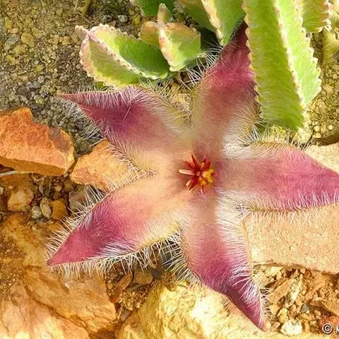 大花犀角是夹竹桃科犀角属的多年生肉质草本植物,茎基部分枝,有齿状突起,灰绿色,形如犀牛角,花大,…
