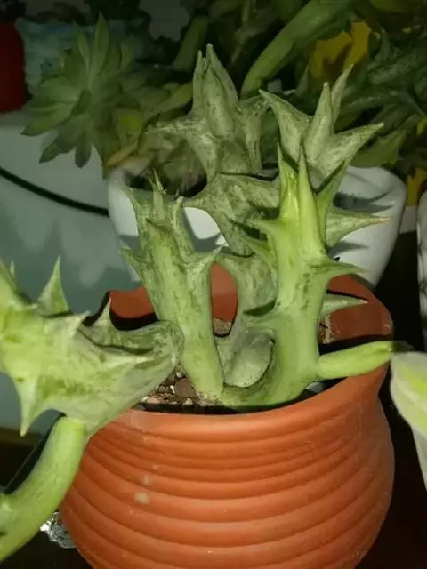 紫龙角是夹竹桃科水牛角属多年生常绿肉质化植物。茎四棱细柱状,半直立或匍匐生长;棱缘波状齿突起,…