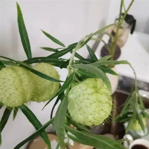 唐棉,株形直立,全株具白色乳汁;叶:线形似柳叶,色浓绿,背面淡绿色,对生;花:繖形花序,腋生,乳白…