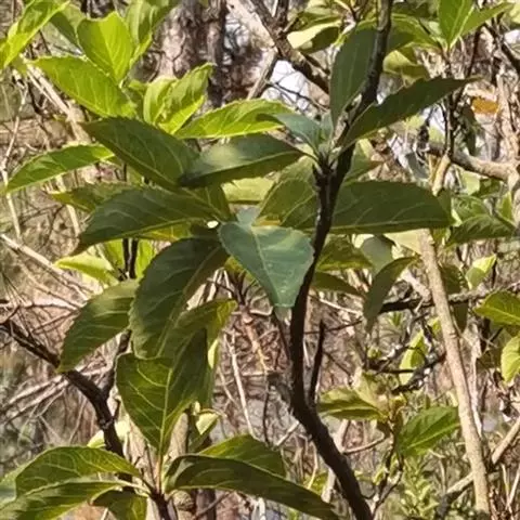 ‧叶:单叶对生,卵形,少数亦有为长椭圆形或长椭圆状披针形,长 2.5~6 公分,宽 2~5 公分,先端锐尖或渐尖而有尖突,基部圆或心形,纸质或薄革质,全缘;表里两面皆密生锈色毛茸,中肋呈不明显的三出脉于表面略凹下,而于背面显著隆起,侧脉及细脉皆明显细致;叶柄长 1~1.5 公分,密生毛茸。