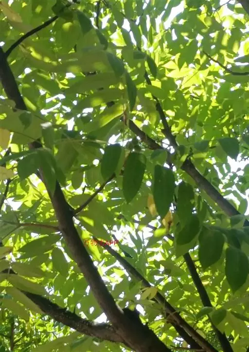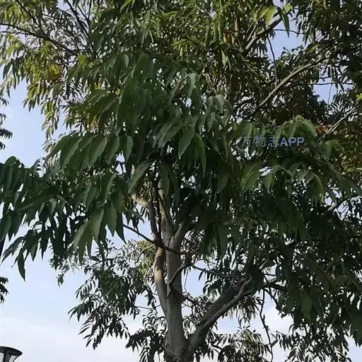 无患子 落叶大乔木,高可达20余米,树皮灰褐色或黑褐色;嫩枝绿色,无毛。单回羽状复叶,叶连柄长25-45厘米或更长,叶轴稍扁,上面两侧有直槽,无毛或被微柔毛;小叶5-8对,通常近对生,叶片薄纸质,长椭圆状披针形或稍呈镰形,长7-15厘米或更长,宽2-5厘米,顶端短尖或短渐尖,基部楔形,稍不对称,腹面有光泽,两面无毛或背面被微柔毛;侧脉纤细而密,约15-17对,近平行;小叶柄长约5毫米。