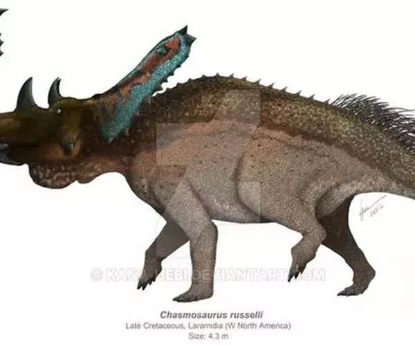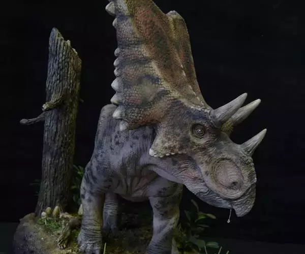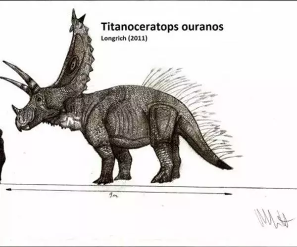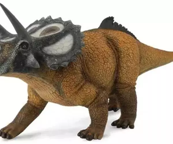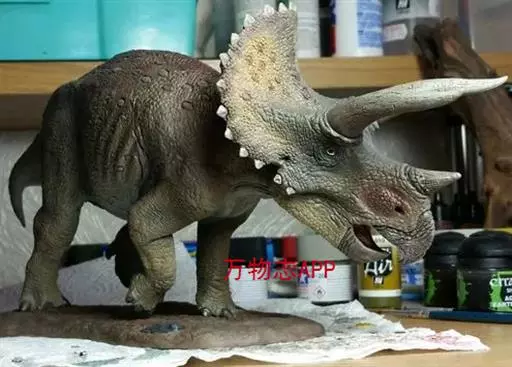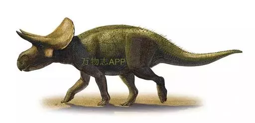 来历:牛角龙拉丁文的意为“巨型爬行动物”,人们曾经发现过一个2.67米的牛角龙头骨。