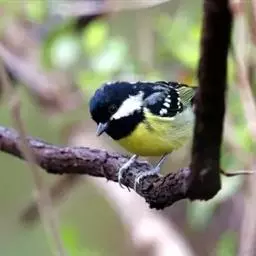 黄腹山雀是雀形目山雀科山雀属鸟类。虹膜褐色或暗褐色;嘴蓝黑色或灰蓝黑色;头、喉胸斑黑色,…