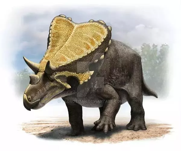 牛角龙身躯庞大,四肢粗壮,巨大的头盾是它们最明显的外形特征。牛角龙的体形和现今的大象一样庞大而笨重,一头成年牛角龙的体重相当于5头成年犀牛的体重。另外,牛角龙的头部还长有3只锋利的角。