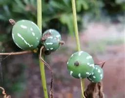 果球形,果期花瓣肉质增大包于果外,成熟时由红色变紫黑色,径4-6毫米;种子卵状长圆形。