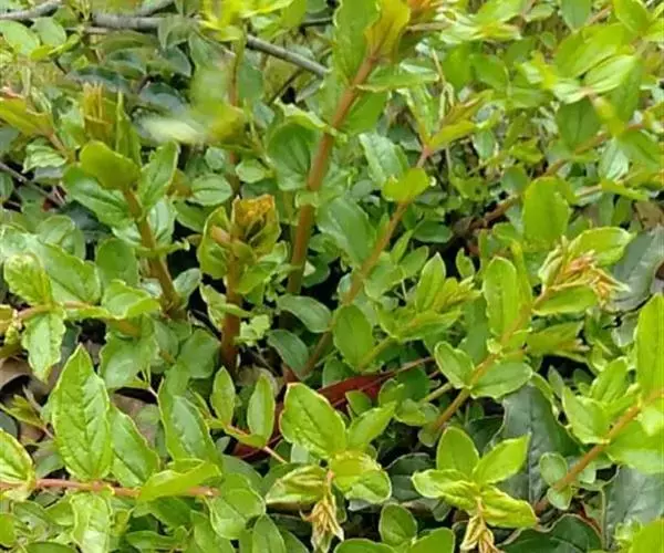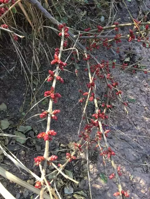 灌木,高1.5-2.5米,分枝水平开展,小枝四棱形或成四狭翅,幼枝疏被微柔毛,后变无毛,常带紫色,老枝紫褐色,具显著圆形突起的皮孔;芽鳞膜质,卵形或卵状三角形,长1-2毫米,紫红色,无毛。
