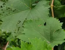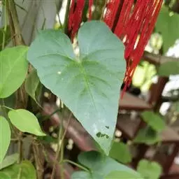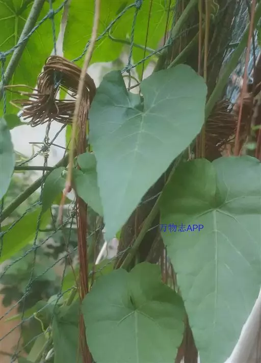 单叶互生,叶色深绿,阔卵形,叶长8~13厘米、叶宽7~11厘米。叶尖渐尖,叶基心形,叶缘微具钝齿,齿凹处有不明显软刺。叶柄绿色,长约2~4厘米,叶脉为羽状脉,叶面平展。