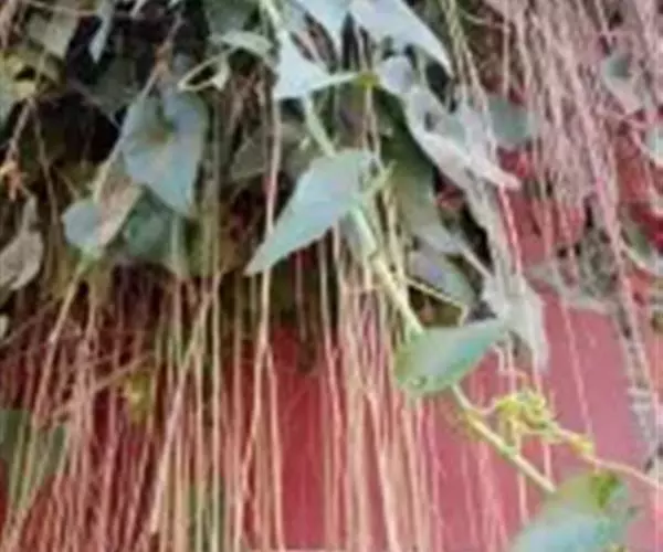锦屏藤(学名:Cissus sicyoides L.)是葡萄科,白粉藤属多年生常绿草质藤蔓植物,具卷须,与叶对生;攀援茎,气生根线形,着生于茎节处,短截的气生根可分生多条侧根,下垂生长。初生气根紫红色,质地光滑脆嫩,老熟气根黄绿色,柔韧,长度可达4米;单叶片互生,叶色深绿,阔卵形,叶尖渐尖,叶基心形,叶缘微具钝齿,叶柄绿色,叶脉为羽状脉,叶面平展;多歧聚伞花序,花小,呈白绿色,两性花。花冠十字形,花盘杯状,萼片基部合生,雄蕊与花瓣对生,果形圆形,果顶有针状突出,果肉为浆果,单核。